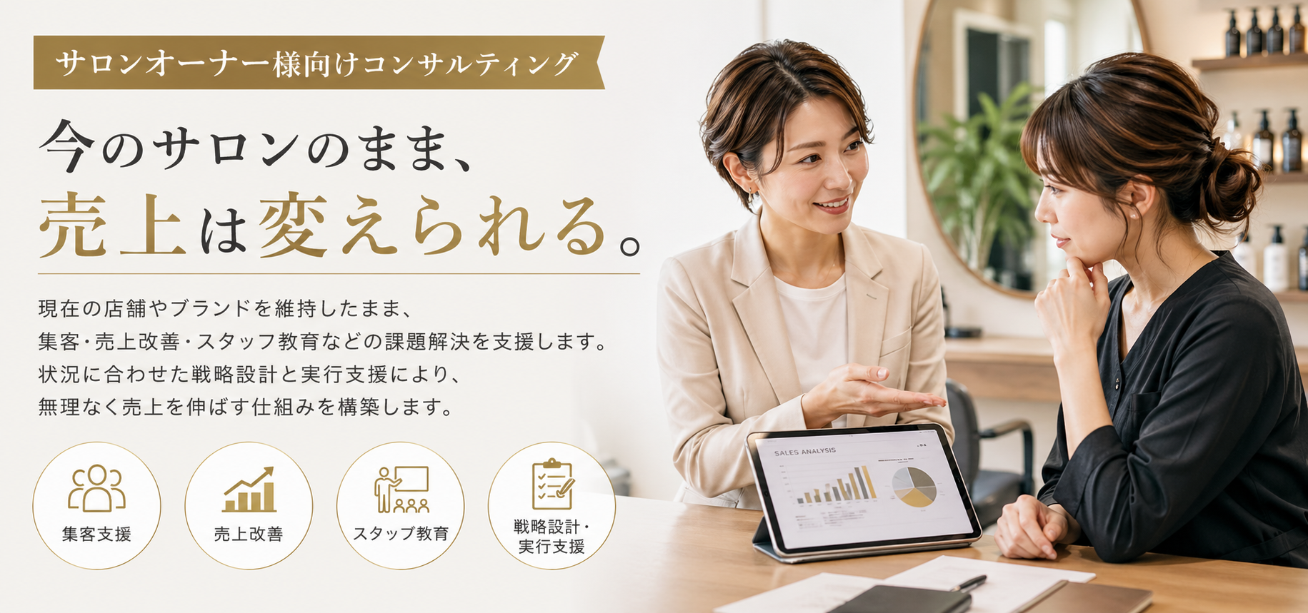 現在の店舗やブランドをそのまま活かしながら、集客・売上改善・スタッフ教育などの課題解決を支援します。